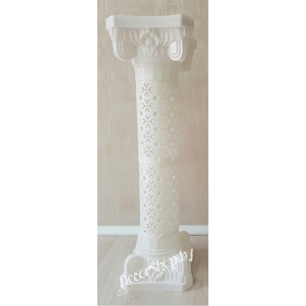 • Колонна  из утолщенного пластика. Размеры: основание 29х29см, диагональ 38см, высота 104,5см, внутренний диаметр 16см..