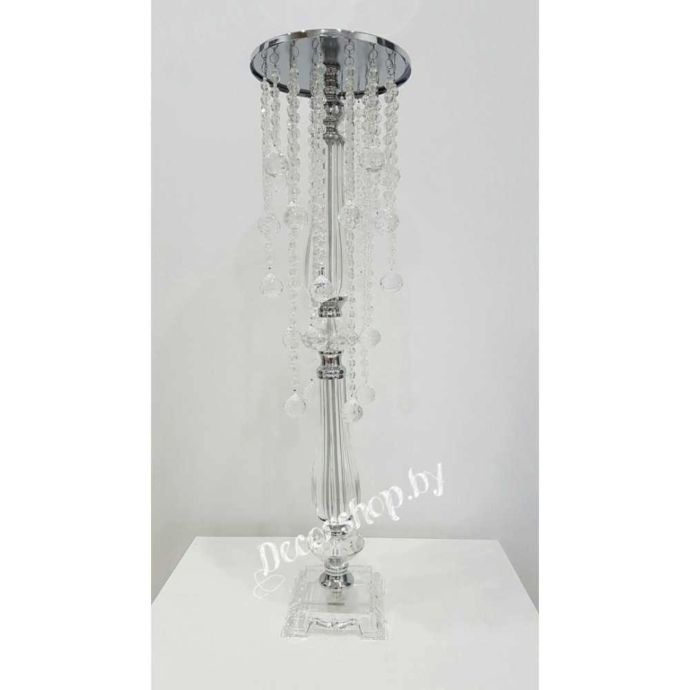 Подставка стеклянная с металлическим верхом со стеклярусом.