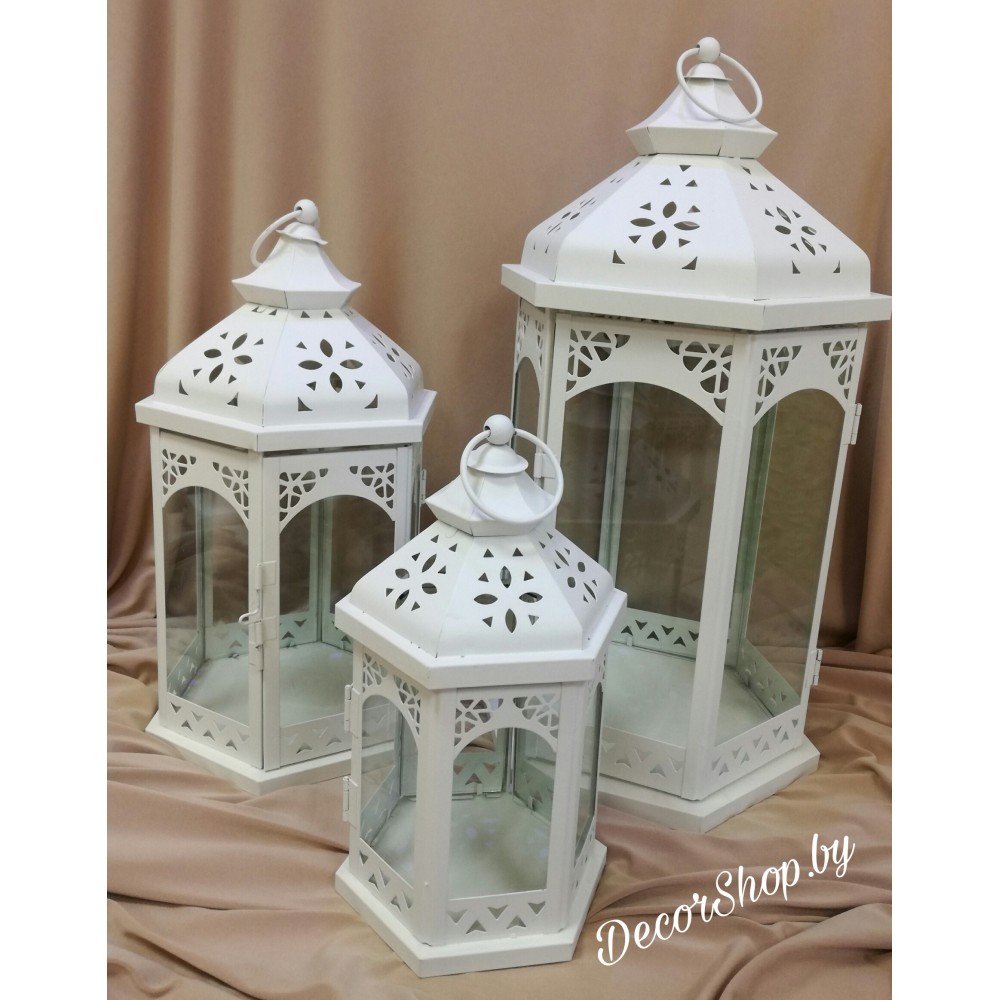 •  Набор декоративных фонарей-подсвечников. Материал:  металл, стекло. Высота: 43см, 34см, 24см.   ..