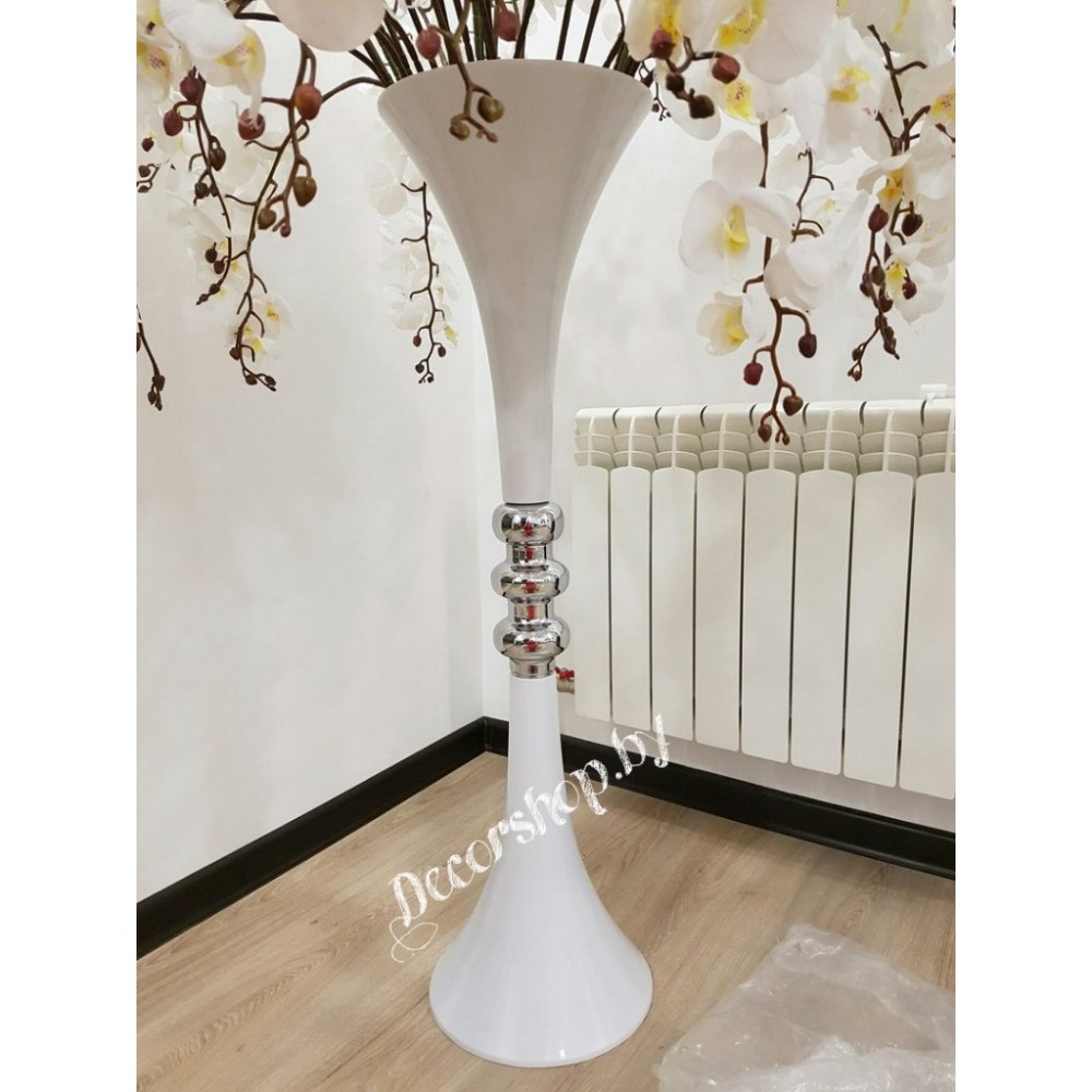 • Металлическая ваза. Высота 107см. Диаметр верхнего и нижнего оснований 30см. Цвет белый с металлической вставко..