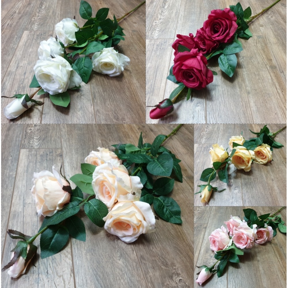 • Ветка роз. Длина 115 см. Состав: 4 головы 9см+1бутон. Цвет: красный, кремовый, нежно-розовый, желтый. ..